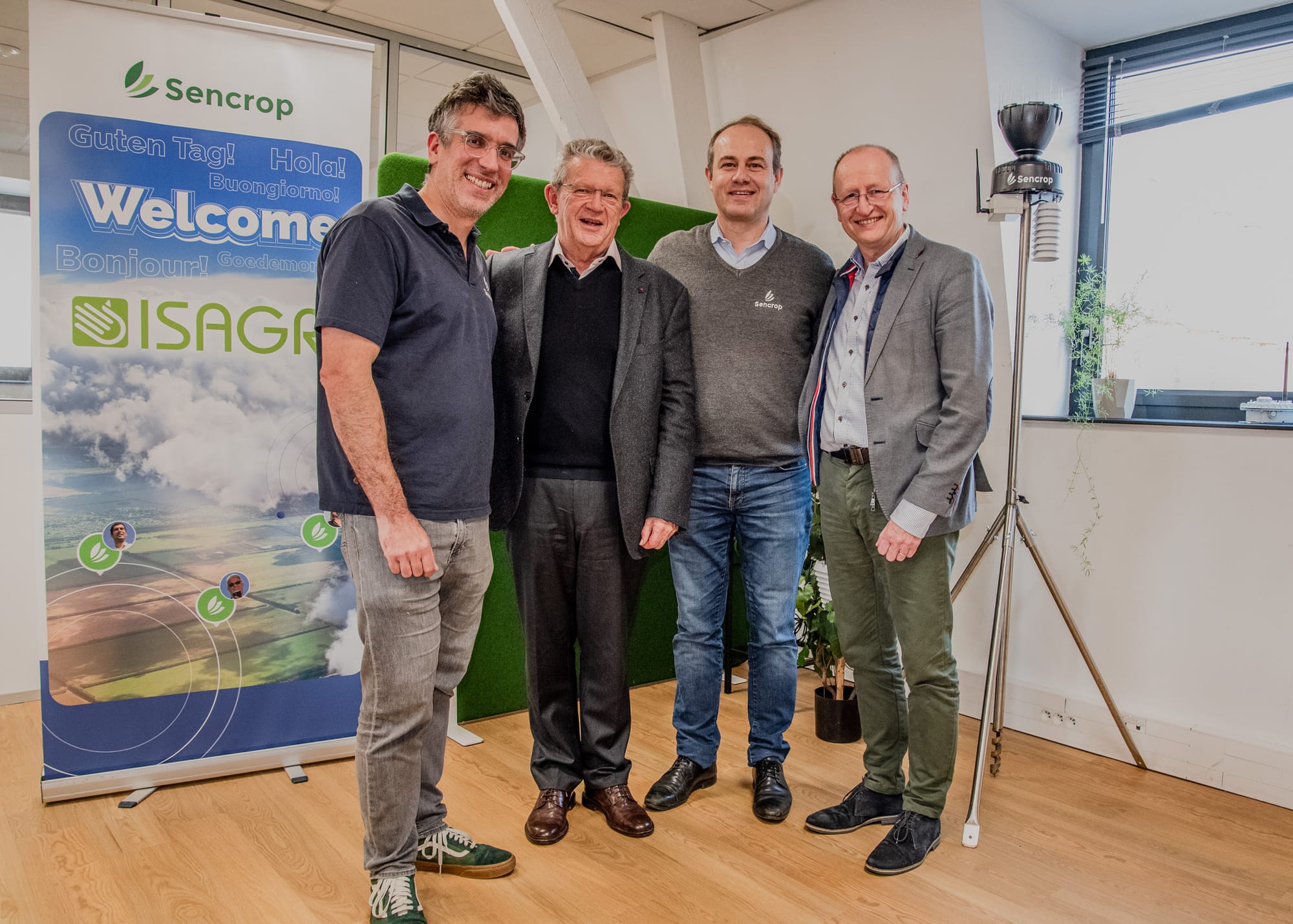 van links naar rechts: Mickaël Bruniaux - Sencrop oprichter; Jean-Marie Savalle - President, Isagri Group oprichter; Martin Ducroquet - Sencrop oprichter; Pascal Chevalier - Isagri Group CEO